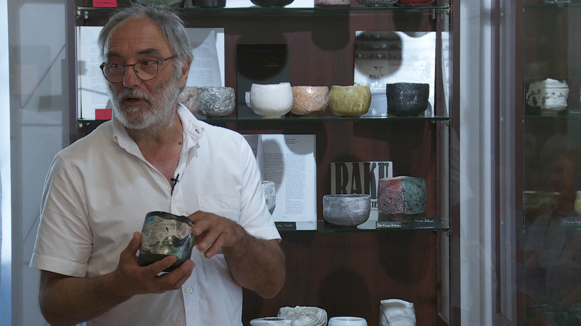 Note de réalisation. Captation de conférences publiques : après avoir installé la caméra, le micro et un poil d’éclairage, je n’ai donc pas eu mon mot à dire pendant le tournage. Le montage a permis de réorganiser les sujets et d’ajouter des images de pièces. Ma compagne étant elle même céramiste, cette excursion au cœur de la culture céramique m’a particulièrement intéressé.